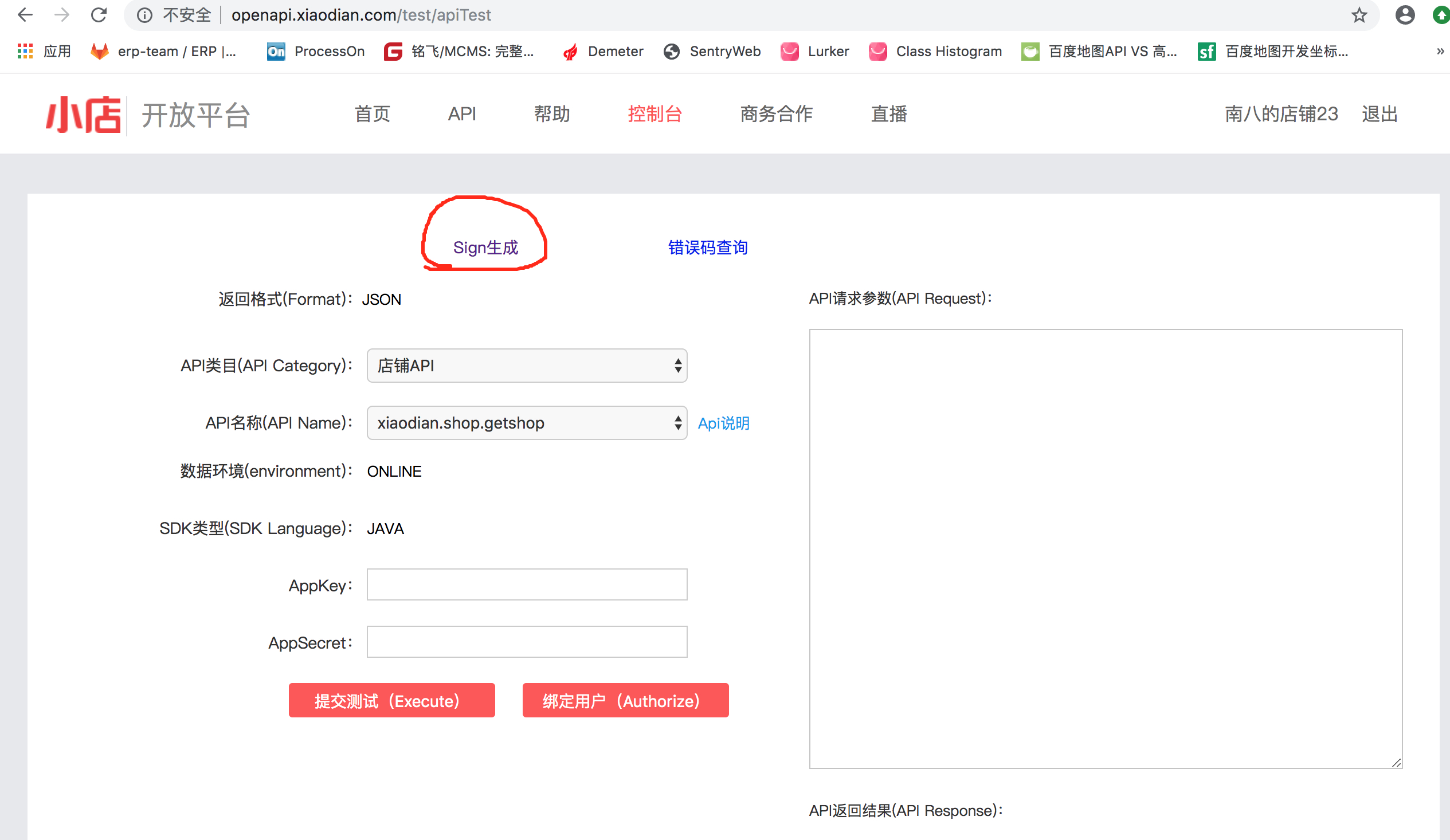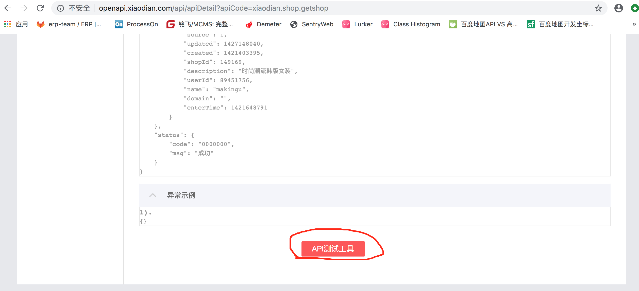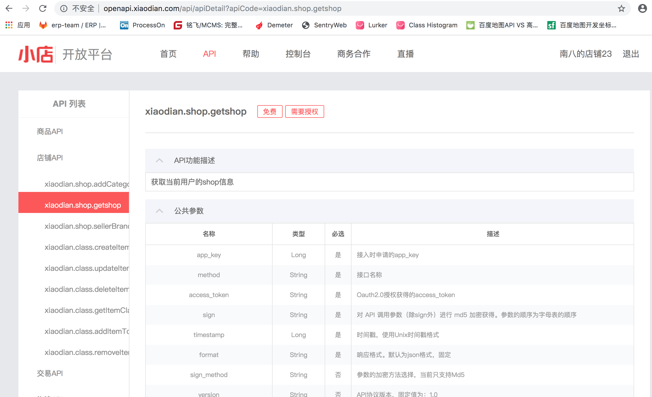 2.1 找到API列表中获取店铺信息的接口